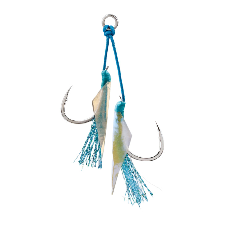 Viene preatado con cordón de asistencia BKK de núcleo sólido de alta calidad, muy robusto pero que conserva su suavidad. Sus fibras brillantes y relucientes aumentan el atractivo del jig, provocando más picadas.